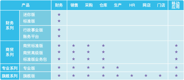 •标准版:针对成长型企业精细化财务核算及管理工作,规范财务核算,加速资金周转,提高资金利用效率