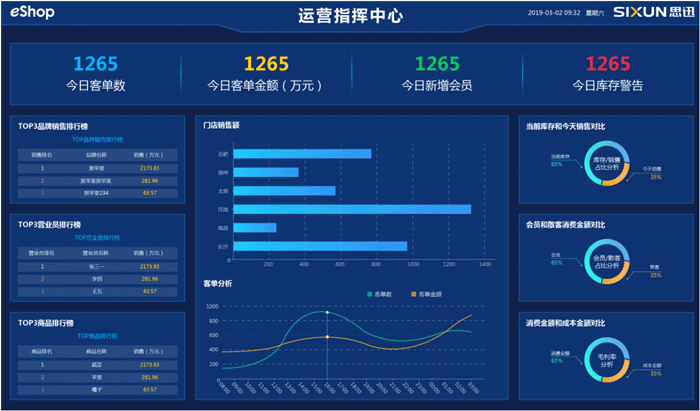 思迅eShop的运营指挥中心平台是eShop在后台系统中新增加的模块,帮助管理者实时掌控门店运营数据,是接团运营的好帮手。